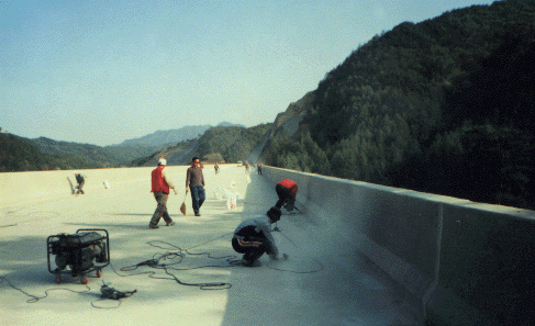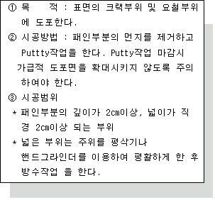 4) 도막식 방수층 : 용액상 혹은 가열용융되어 용액상으로 되는 방수층으로 현장에서 시공할 때 상판에 도포되는