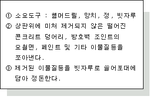접착층, 방수층등의 완성형 관리 항목과 그의 빈도 등은 아래 표에 나타내었다.